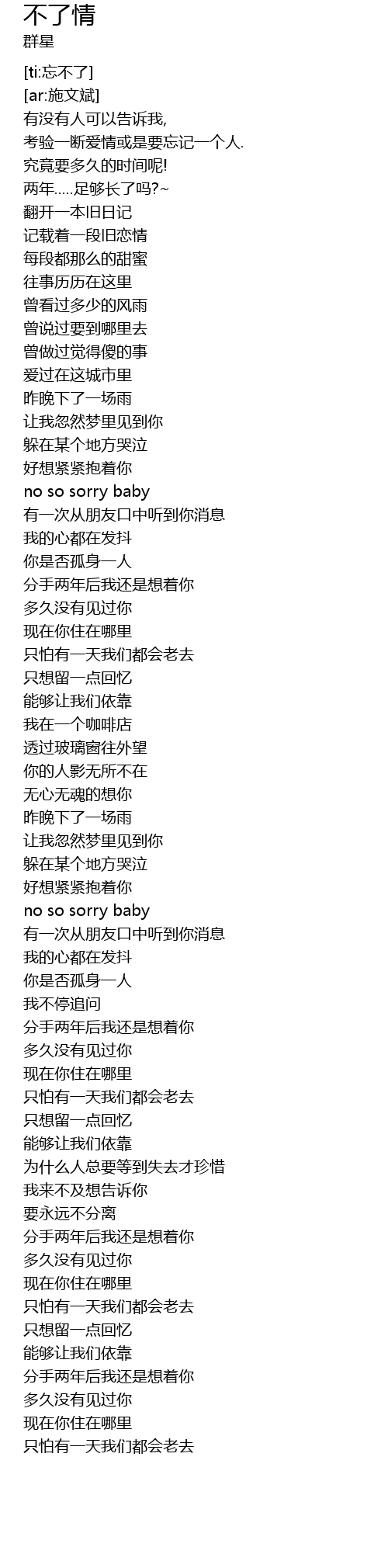 | [00:11.369] | 考验一断爱情或是要忘记一个人. |