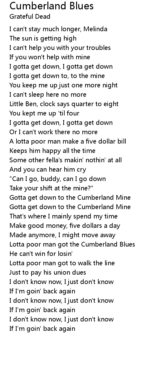 Gotta get down to the Cumberland Mine |