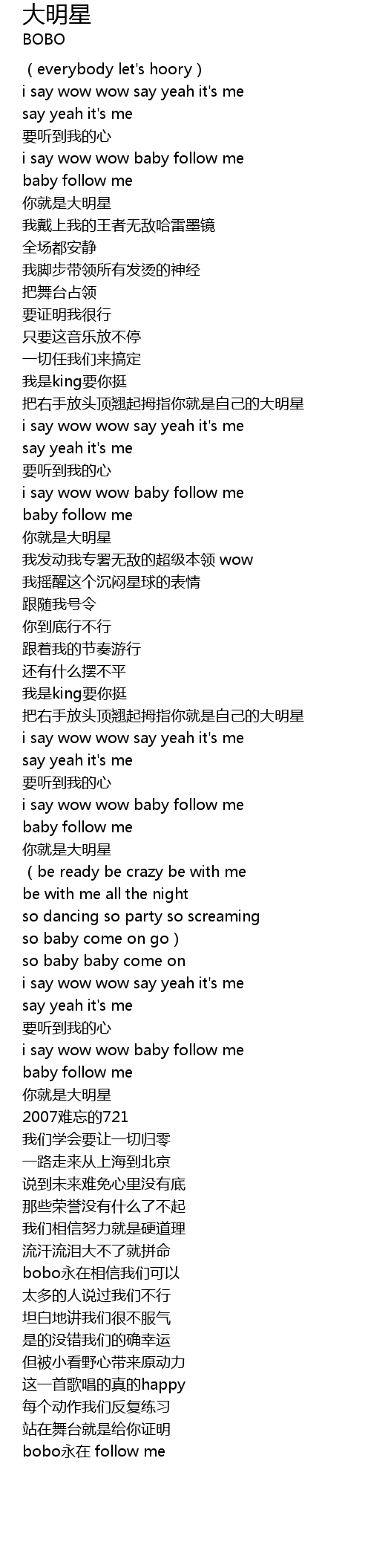 | [03:59.120] | bobo yong zai follow me |