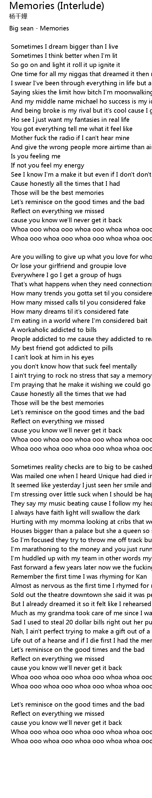 | Whoa ooo whoa ooo whoa ooo whoa whoa ooo whoa the memories | |