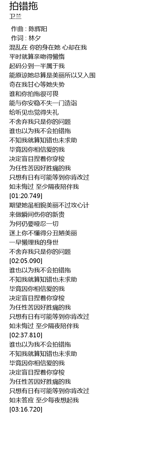 | [02:43.600] | shui ye yi wei wo bu hui pai cuo tuo |