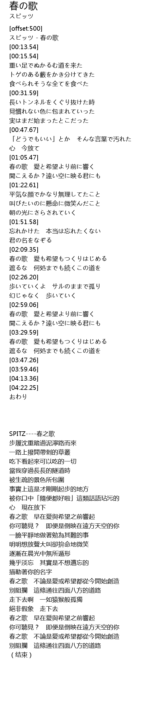 | [03:13.59] | 春の歌 愛と希望より前に響く |