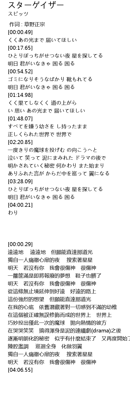 | [00:00.00] | 作词 : 草野正宗 |