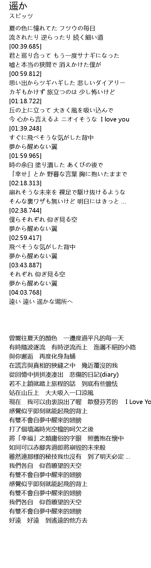 | [03:54.027] | 夢から醒めない翼 |