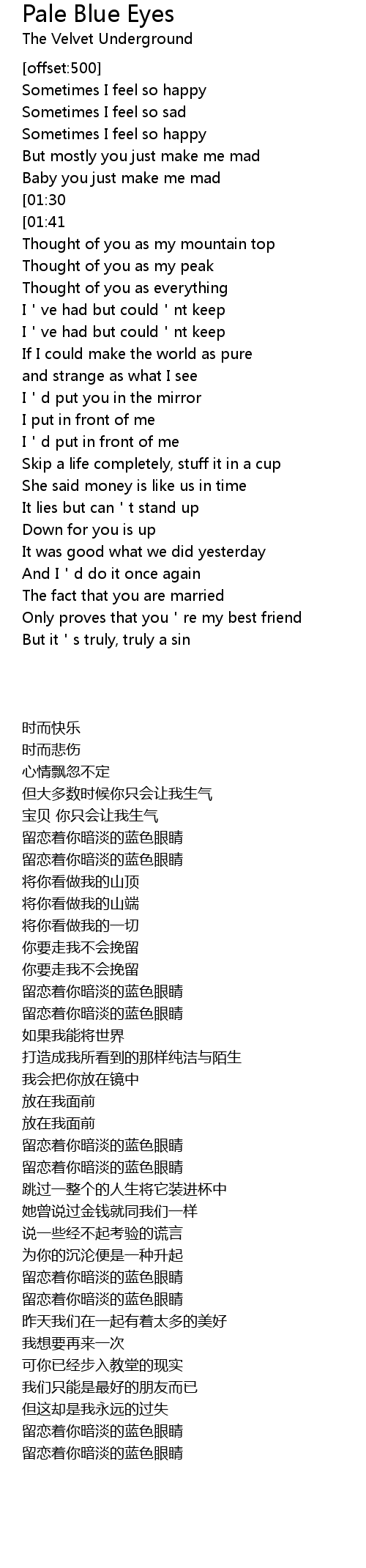 | [00:36][01:30][02:27][04:17][05:12] | Linger on, your pale blue eyes |