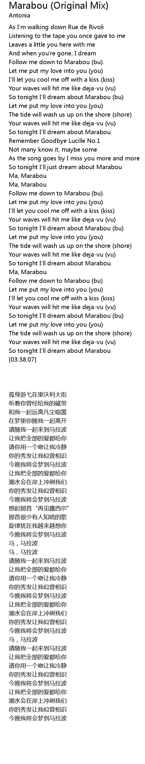 | [00:35.50] | Follow me down to Marabou (bu). |