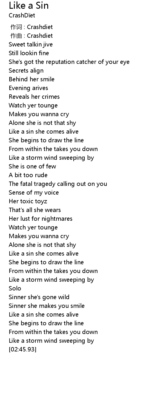 | [00:01.000] | zuò qǔ : Crashdiet |