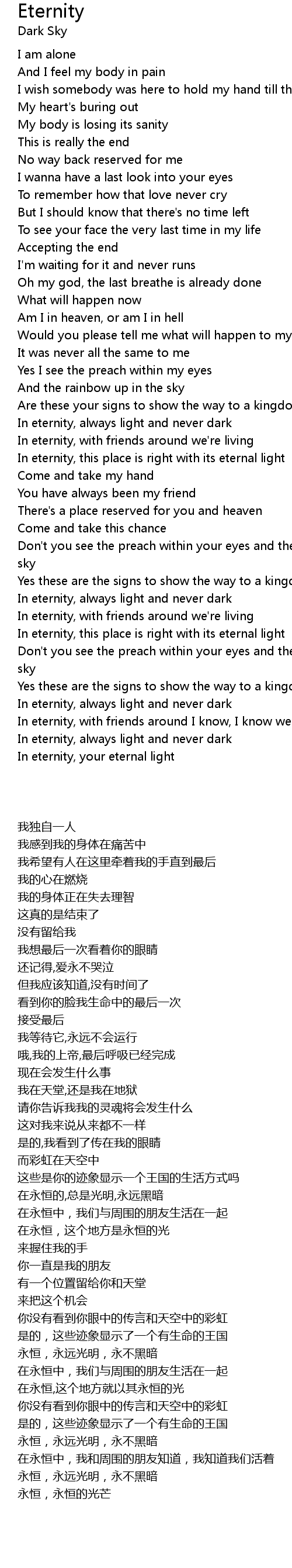 | [02:04.79] | In eternity, this place is right with its eternal light |