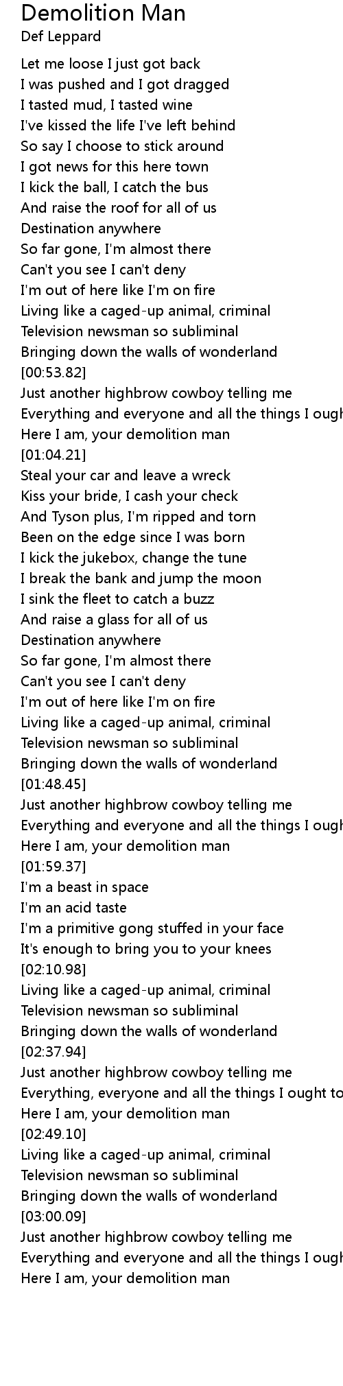 Here I am, your demolition man |
