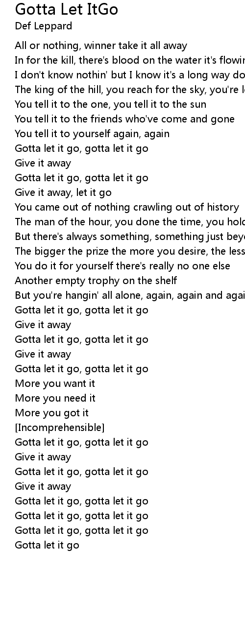 Gotta let it go, gotta let it go |