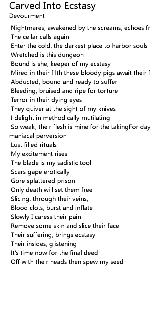 So weak, their flesh is mine for the takingFor days they fall to maniacal perversion |