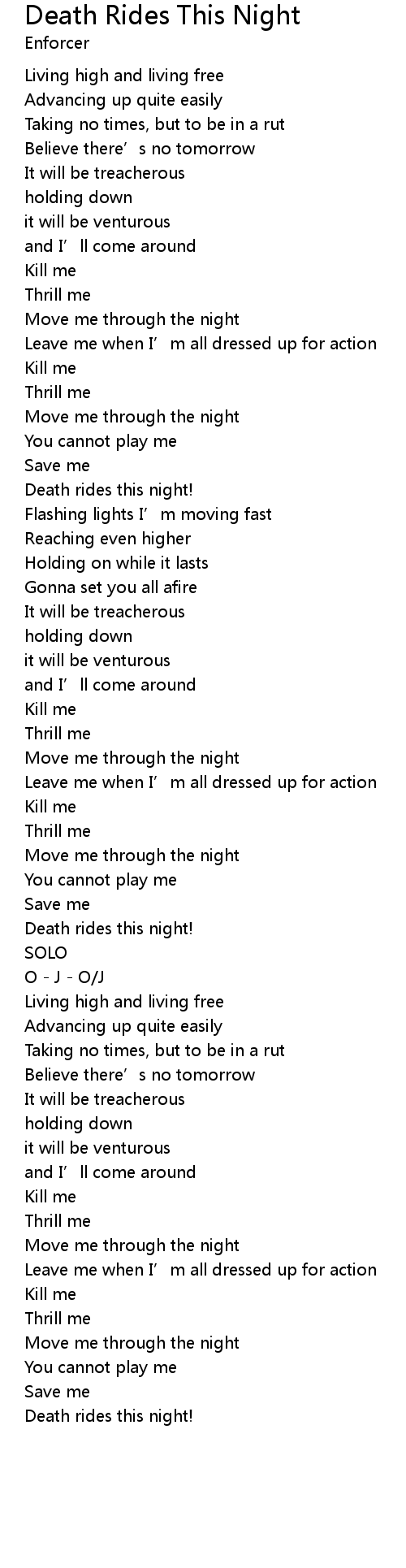 | Song | Death Rides This Night |
