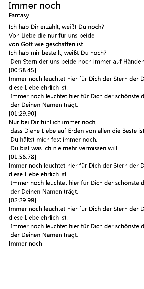 | [02:59.72] | Immer noch leuchtet hier fü r Dich der Stern der Dir verspricht, dass diese Liebe ehrlich ist. |