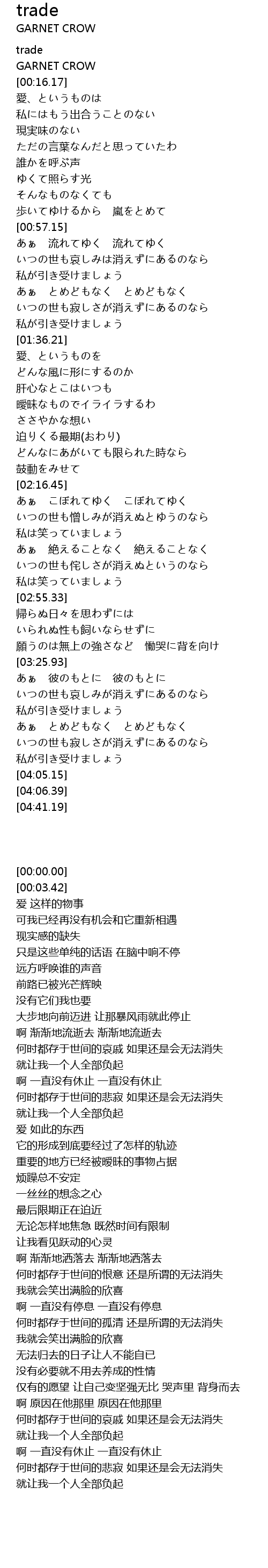| [03:45.58] | あぁ とめどもなく とめどもなく |