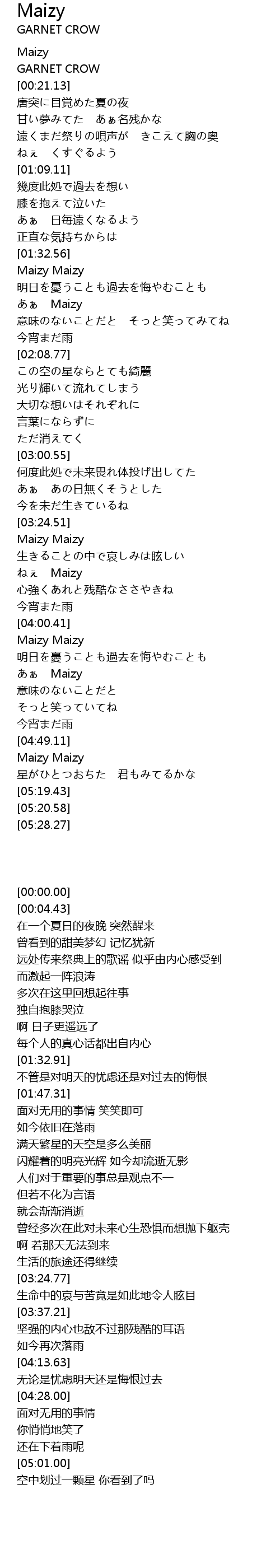 | [04:28.00] | あぁ Maizy |