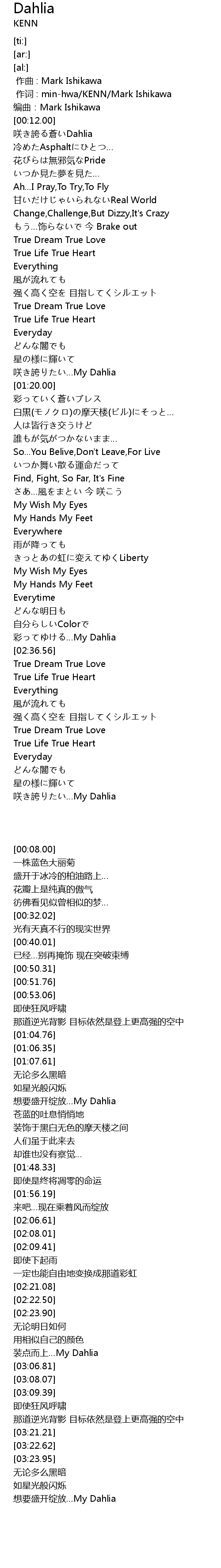 | [02:32.02] | 彩ってゆける…My Dahlia |