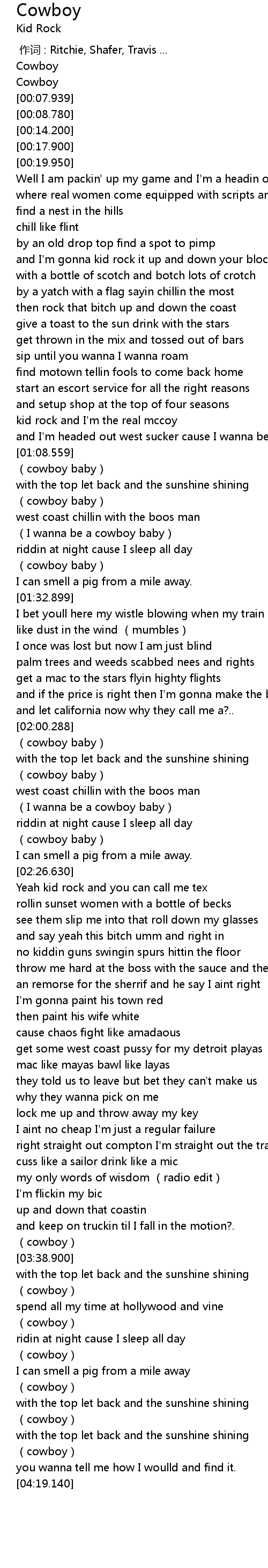 | [02:40.360] | Yeah kid rock and you can call me tex |