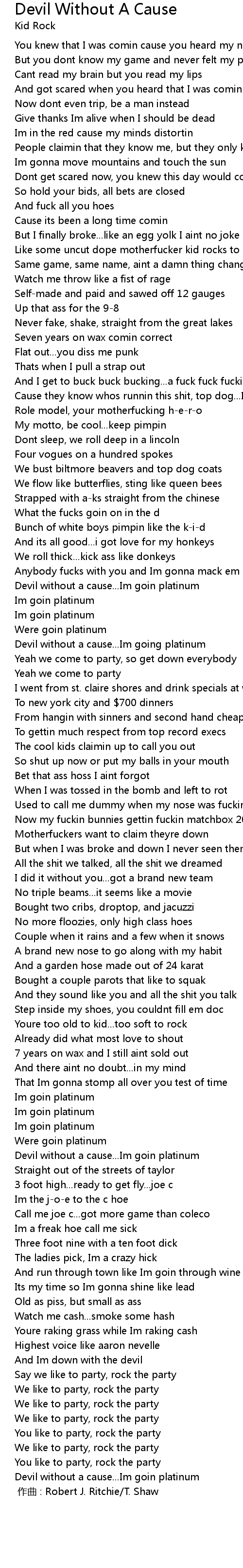 | Devil without a cause...Im goin platinum | |