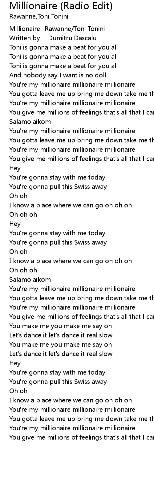 | [00:00.47] | Millionaire Rawanne Toni Tonini |