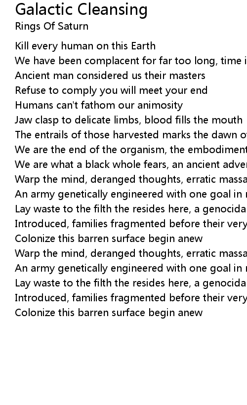 The entrails of those harvested marks the dawn of a new galactic cleansing |