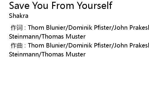 | [00:00.000] | 作曲 : Thom Blunier/Dominik Pfister/John Prakesh/Thomas Steinmann/Thomas Muster |