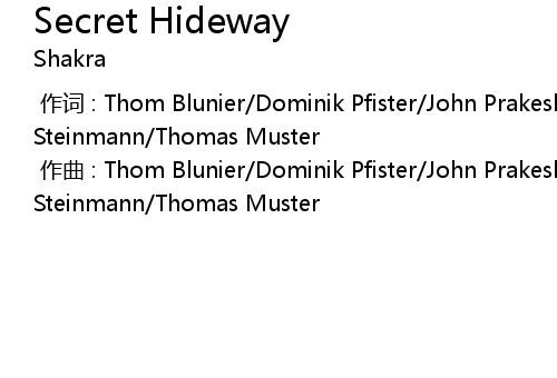 | [00:00.000] | 作词 : Thom Blunier/Dominik Pfister/John Prakesh/Thomas Steinmann/Thomas Muster |