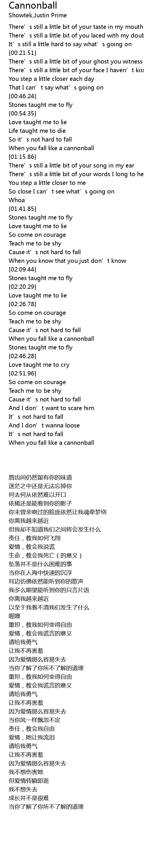 | [02:37.49] | When you fall like a cannonball |