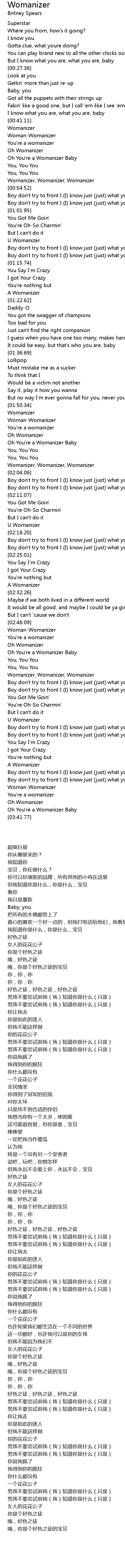 [02:50.61] Oh You're a Womanizer Baby