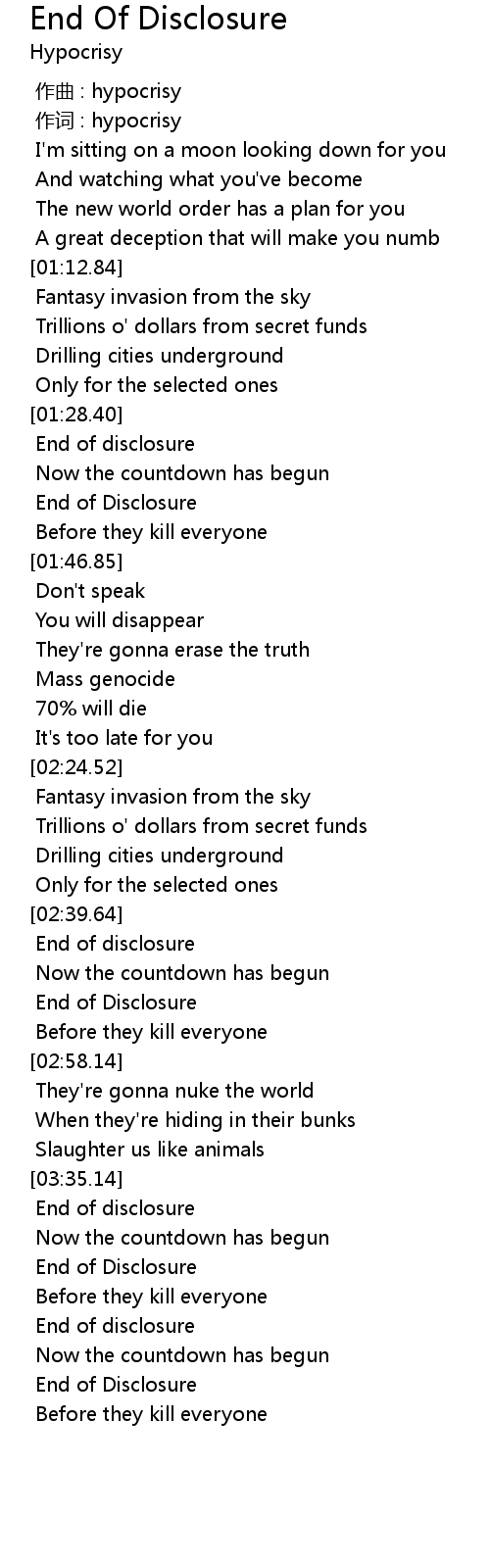 | Song | End Of Disclosure |