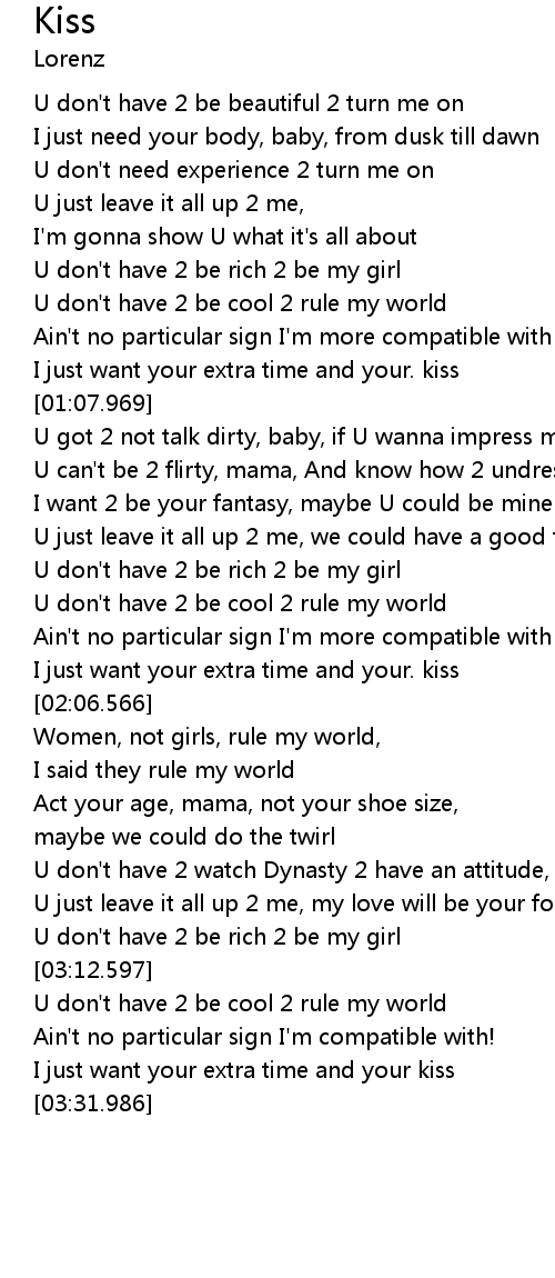 | [03:16.316] | U don' t have 2 be cool 2 rule my world |