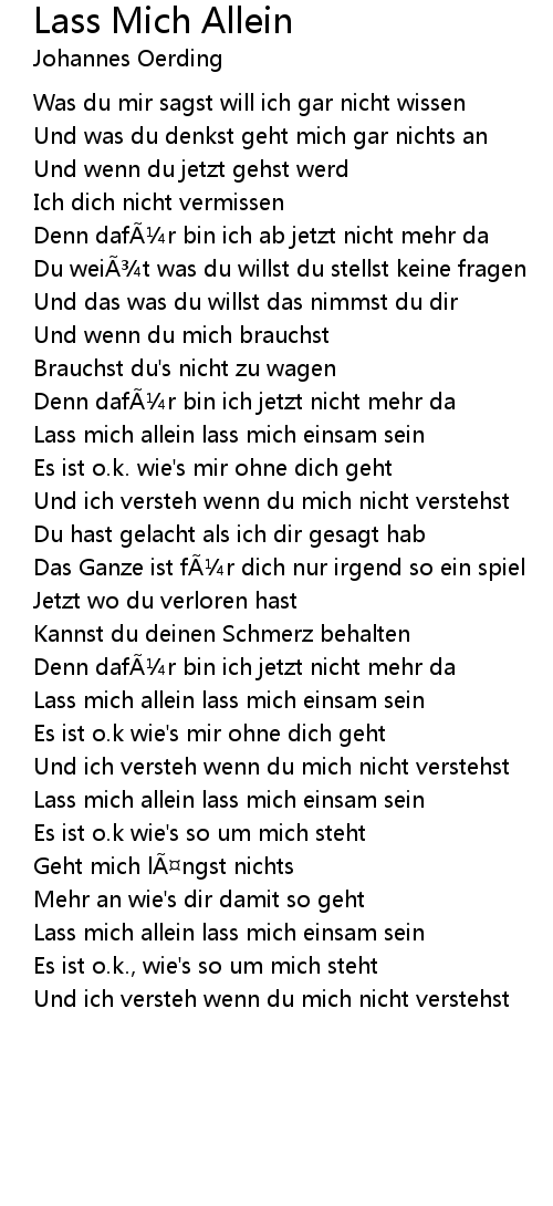 | Lass mich allein lass mich einsam sein | |