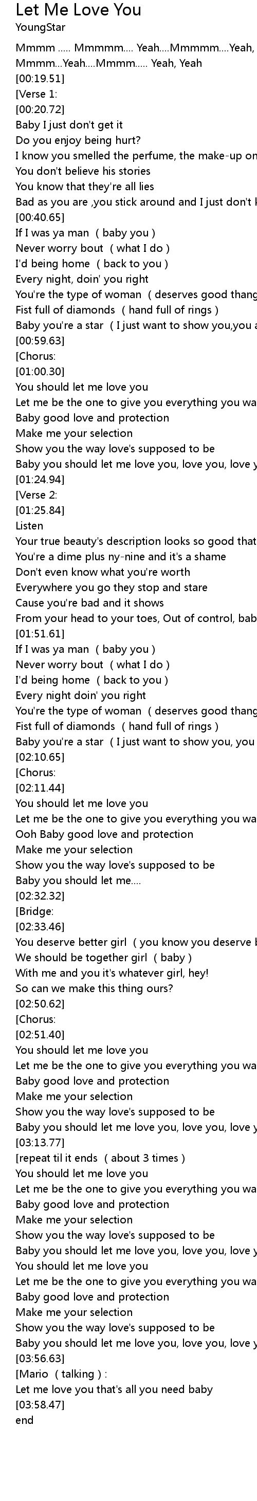 | [03:51.53] | Baby you should let me love you, love you, love you |