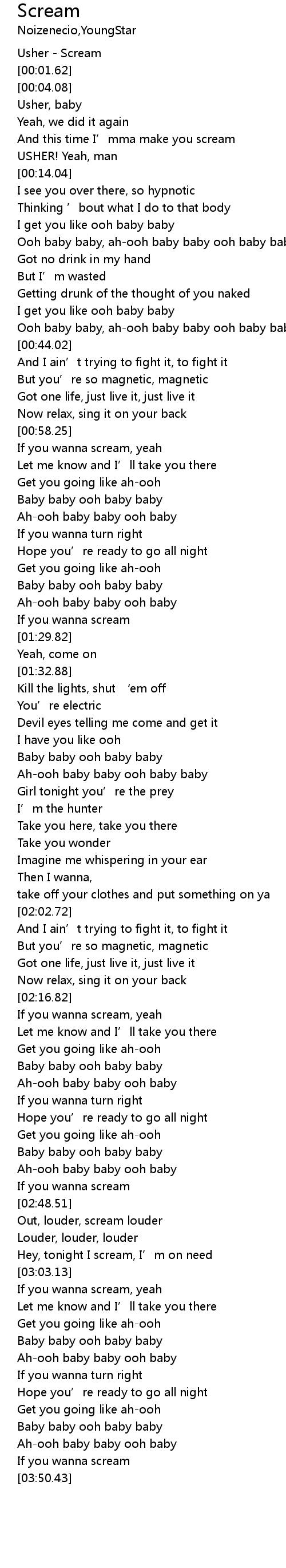 | [00:00.00] | Usher Scream |