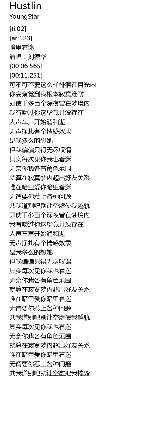 | [02:59.199] | 唯在暗里爱你暗里着迷 |