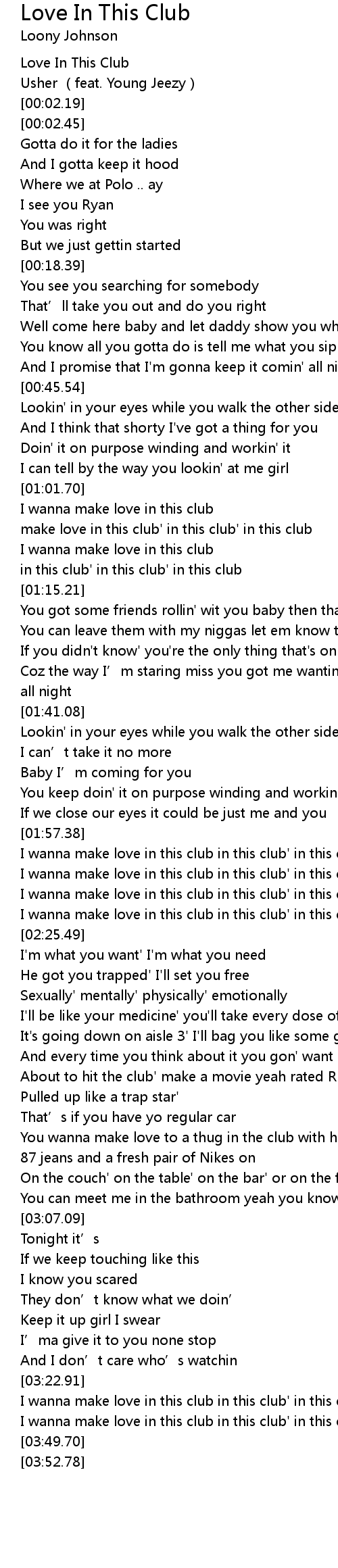 | [01:03.97] | make love in this club' in this club' in this club |