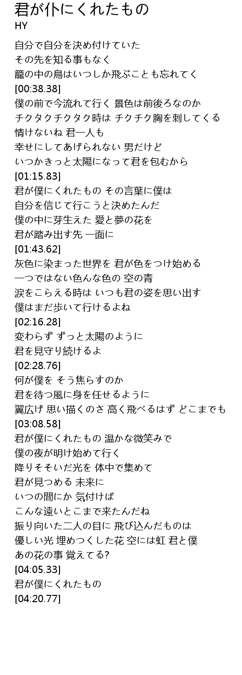 | [01:16.09] | 君が僕にくれたもの その言葉に僕は |