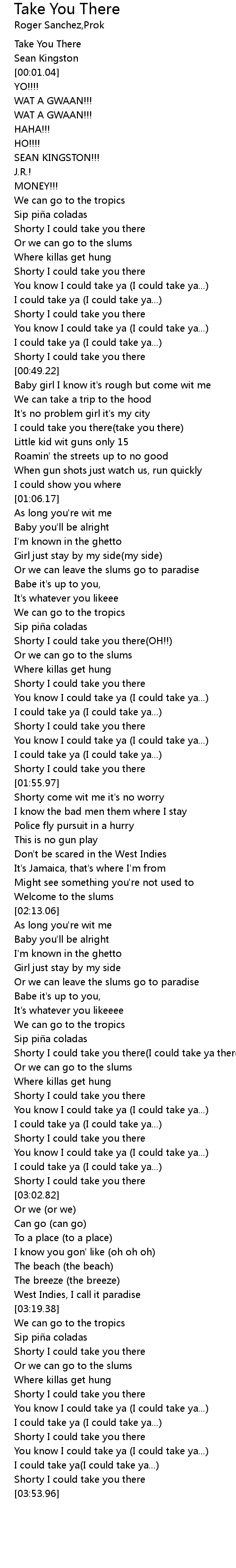 | [02:34.40] | Shorty I could take you there I could take ya there.. take ya |