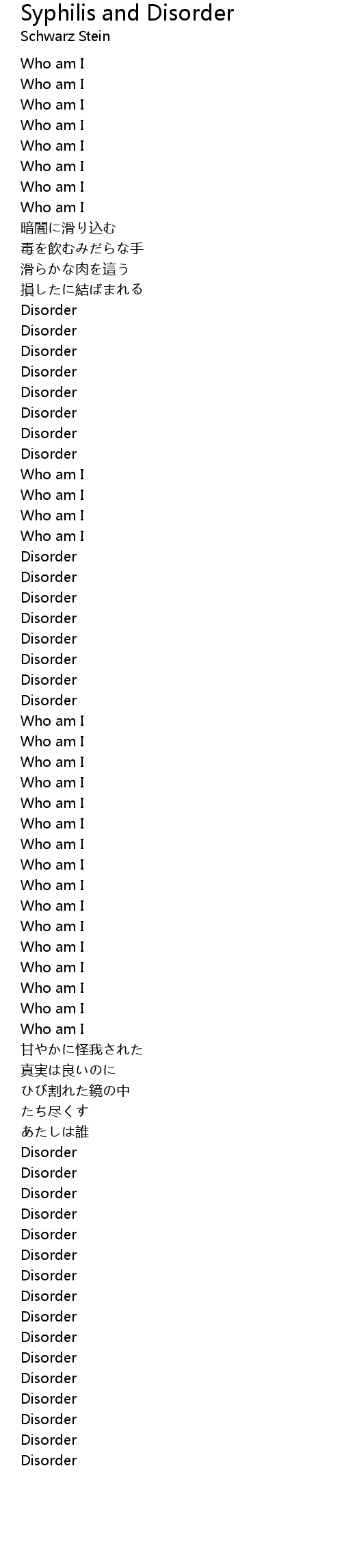 Syphilis and Disorder Lyrics