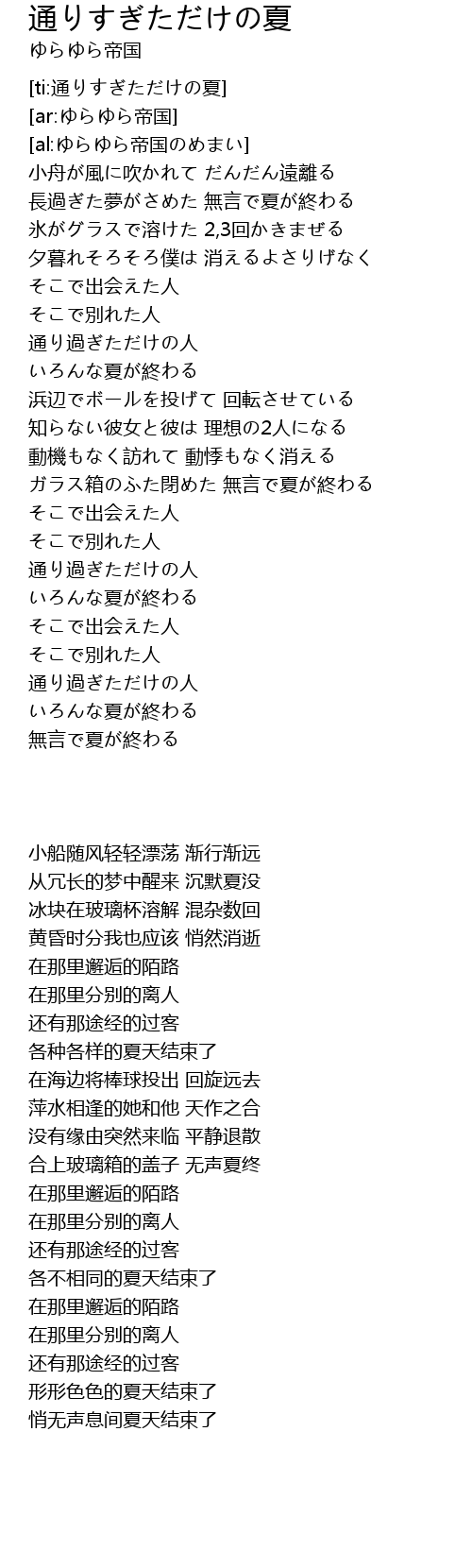 | [02:30.41] | ガラス箱のふた閉めた 無言で夏が終わる |