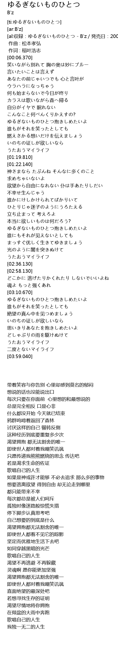 | [00:01.00] | 作词 : 稲叶浩志 |