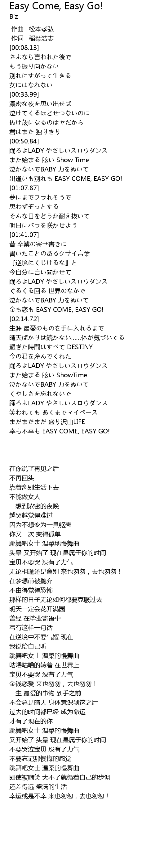 | [02:10.22] | jin lian EASY COME, EASY GO! |