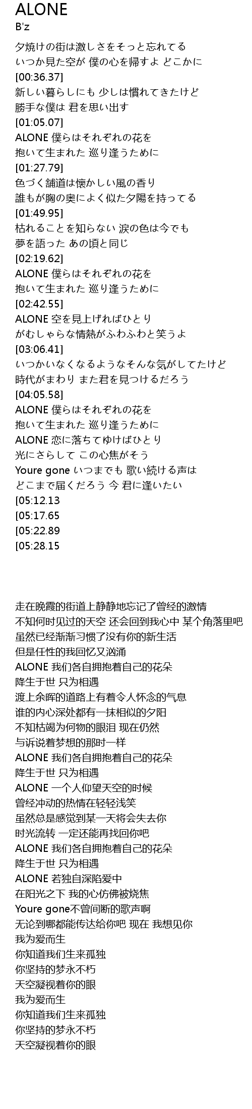 | [04:07.91] | ALONE 僕らはそれぞれの花を |