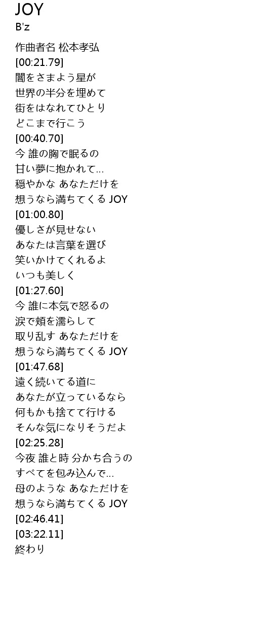 | [01:43.09] | 想うなら満ちてくる JOY |