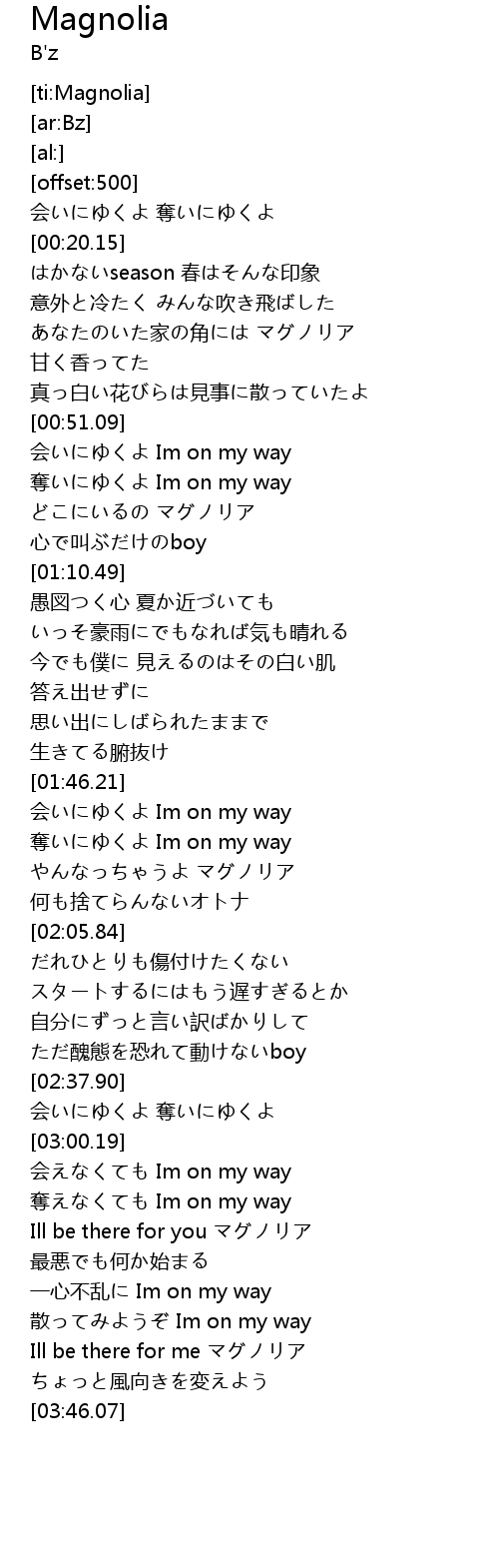 | [01:57.16] | やんなっちゃうよ マグノリア |