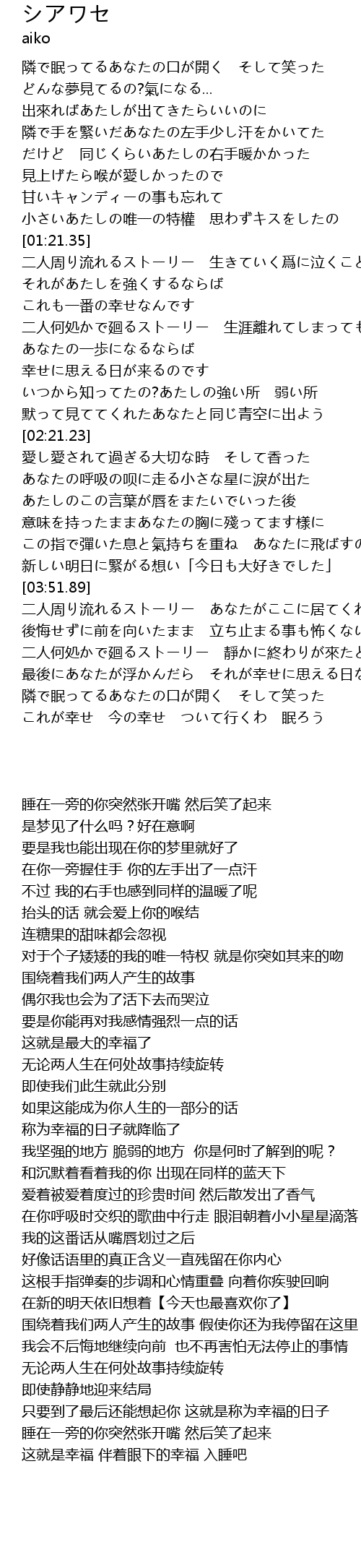 | [04:40.61] | これが幸せ 今の幸せ ついて行くわ 眠ろう |