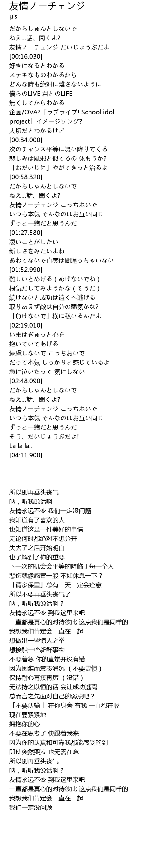 | [03:20.660] | 友情ノーチェンジ こっちおいで |