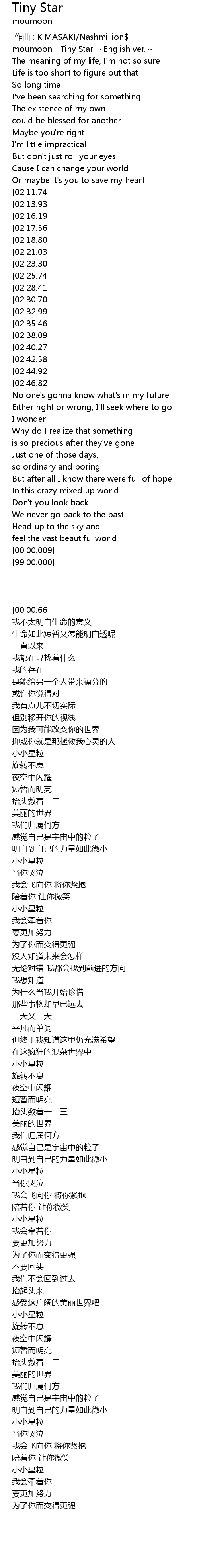 | [00:00.66] | moumoon Tiny Star English ver. |