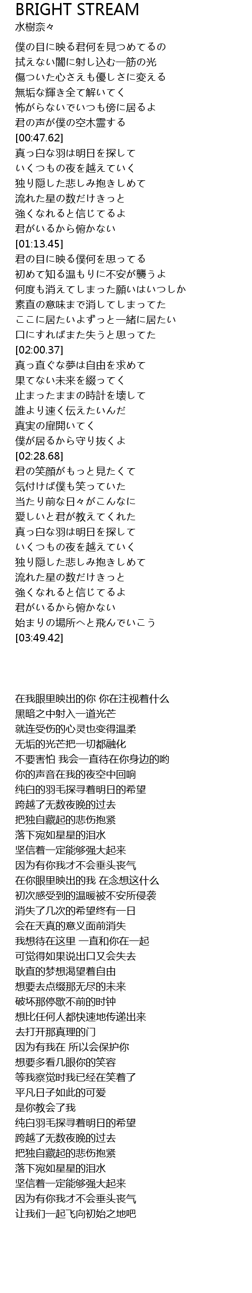 | [00:48.37] | 真っ白な羽は明日を探して |