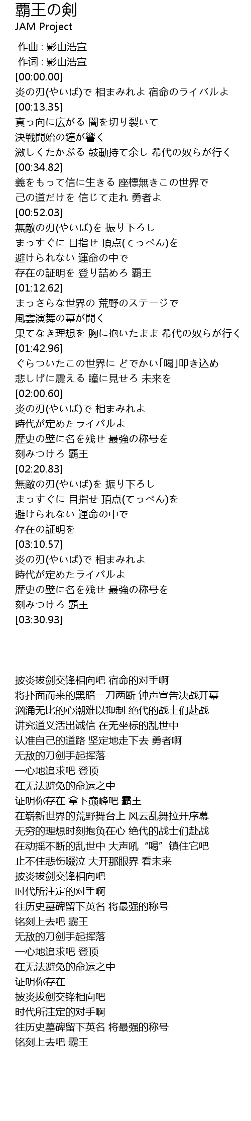 | [03:26.75] | 刻みつけろ 覇王 |