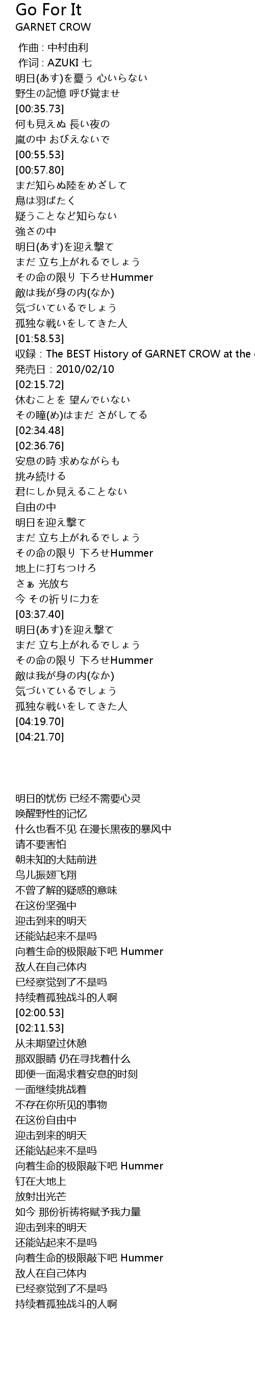 | [02:00.53] | shou lu: The BEST History of GARNET CROW at the crest CD3 |